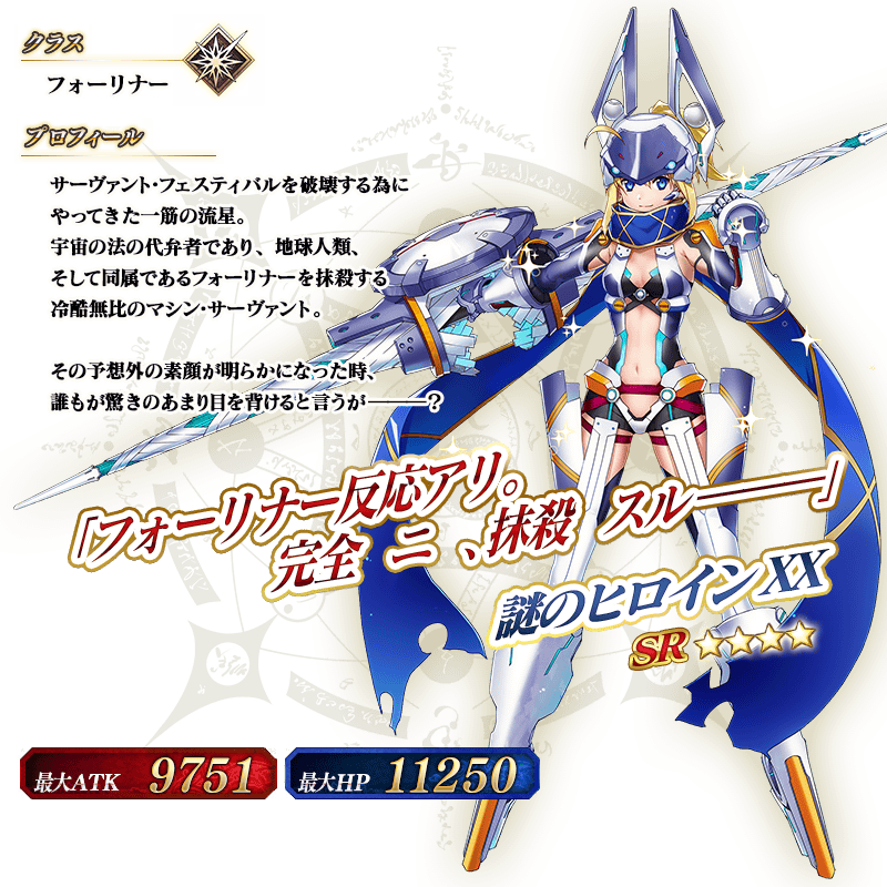 ※上記にて紹介しているサーヴァント「★4(SR)謎のヒロインXX(フォーリナー)」のイラストは霊基再臨第2段階となります。