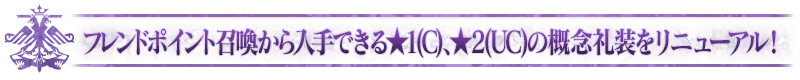 フレンドポイント召喚から入手できる「★1(C)」および「★2(UC)」の概念礼装をすべてリニューアルいたします(イラストやATK/HPおよびスキルなどすべてを一新)