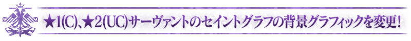 レアリティ「★1(C)」および「★2(UC)」の一部サーヴァントのセイントグラフに表示されている背景グラフィックを変更いたします。