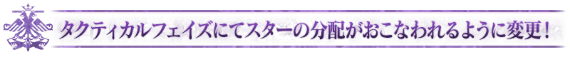 これまで、コマンドフェイズ画面移行時に分配されていたスターは、タクティカルフェイズ画面にて分配されるように変更となります。
