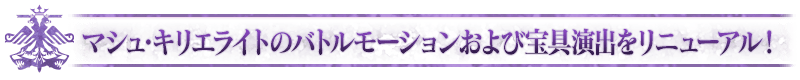 マシュ・キリエライトのバトル時のモーションおよび宝具演出をリニューアルいたします。
