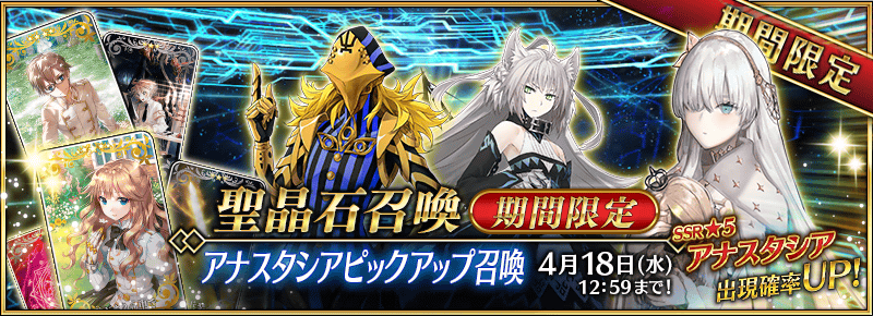 ※「★5(SSR)アナスタシア」「★4(SR)アタランテ〔オルタ〕」「★3(R)アヴィケブロン」はピックアップ期間終了後にストーリー召喚に追加されます。