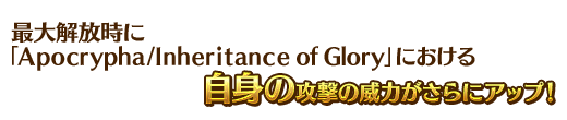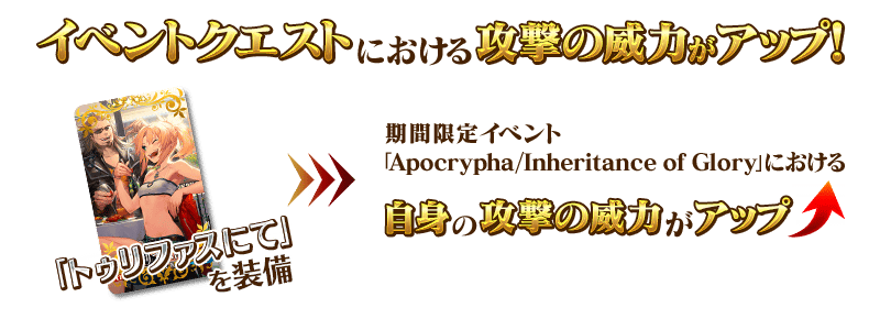 対象のサーヴァントは期間限定イベント「Apocrypha/Inheritance of Glory」のイベントクエストにおける、自身の攻撃の威力がアップします!
