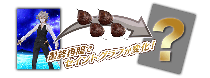 イベント期間中、「ドラクルコイン」の獲得報酬でしか手に入らない「忘れじの葉」を使って、霊基再臨を4回繰り返すと、セイントグラフに変化が!