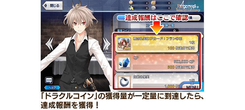 「ドラクルコイン」の獲得報酬として、概念礼装を大幅に強化できるEXPカードを入手できます! |