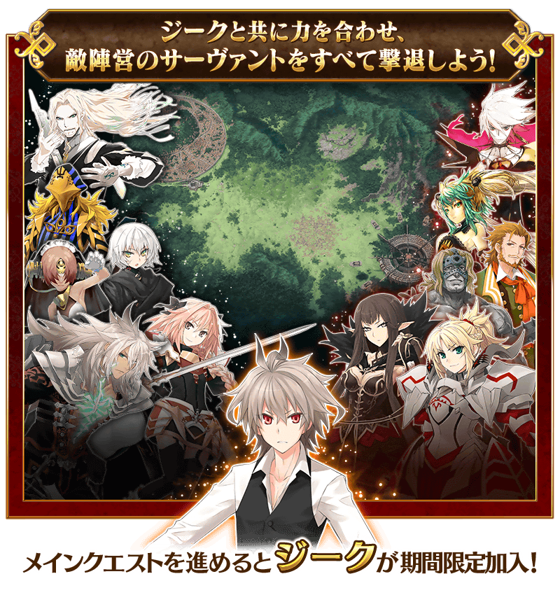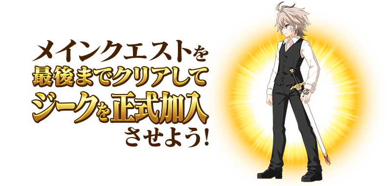 すべてのマスターと力を合わせ、敵陣営のサーヴァントを撃退しメインクエストを最後まで進めて、イベント限定サーヴァント「★4(SR)ジーク」をゲットしましょう!
