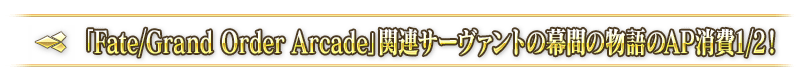 下記の期間中、「Fate/Grand Order Arcade」に関連する一部サーヴァントを対象に、幕間の物語のAP消費量が1/2となります。
