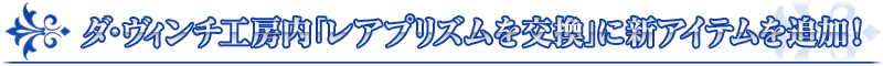 ダ・ヴィンチ工房の「レアプリズムを交換」に、下記の新アイテムを追加いたします。