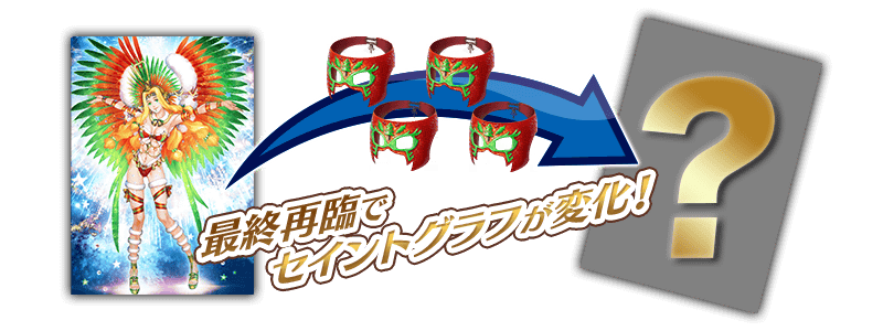 「プレゼント抽選」でのみ入手可能な「ククルカンマスク」を使って、霊基再臨を4回繰り返すと、セイントグラフに変化が!