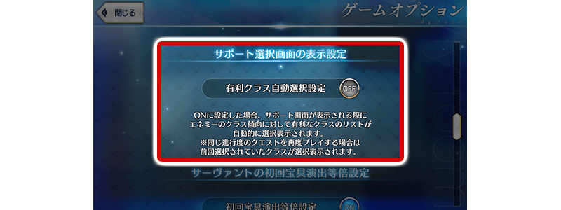 サポート選択画面に遷移した際に、自動的に有利なクラスが選択される機能を追加!