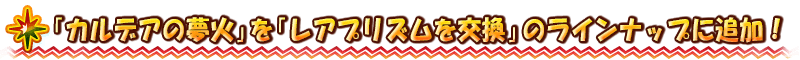 絆レベル上限開放用アイテム「カルデアの夢火」を、ダ・ヴィンチ工房の「レアプリズムを交換」のラインナップに追加いたします。