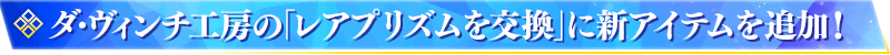 ダ・ヴィンチ工房の「レアプリズムを交換」に、下記の新アイテムを追加いたします。