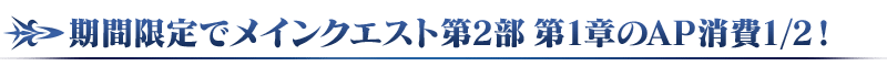 現在、永続的に開催しているAP消費量1/2の状態に、さらにAP消費量1/2を追加して、期間限定でメインクエスト第1部(特異点Fから終局特異点まで)のAP消費量が1/4になります!