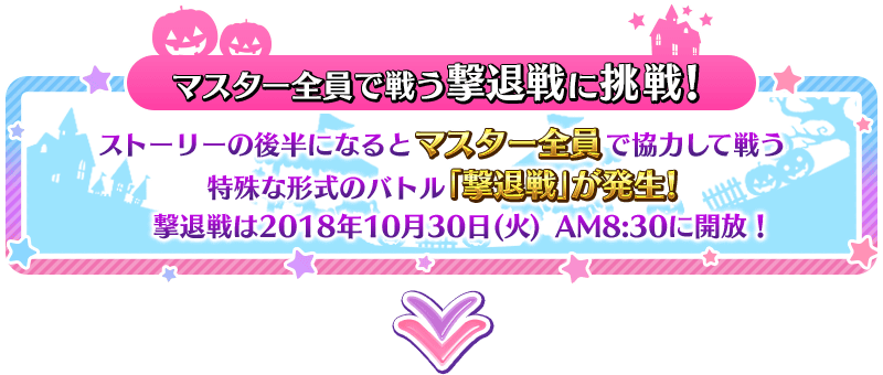 本イベントではストーリーが楽しめるメインクエストが日ごとに開放されるほか、10月30日(火) AM8:30には、イベント参加中のマスター全員で強敵に挑む、特殊な形式のクエストが開放されます!