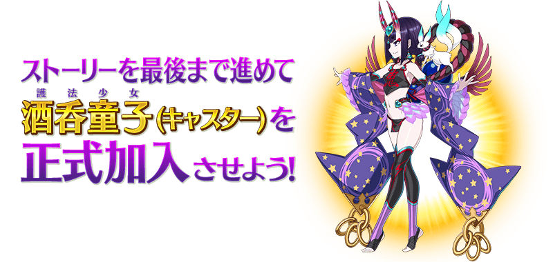 本イベントではメインクエストを進行すると、イベント限定サーヴァント「★4(SR)酒呑童子(キャスター)」が期間限定で加入します。