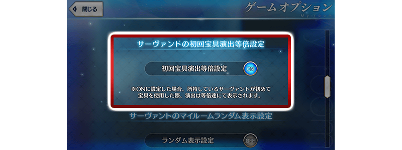 所持しているサーヴァントが初めて宝具を使用した際のみ、宝具演出速度を等倍速で表示できる機能を追加しました。