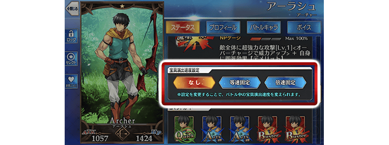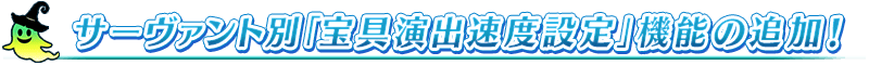 宝具演出速度をサーヴァント別に設定できる機能を追加しました。