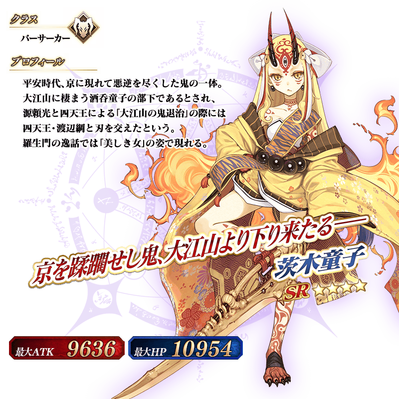 ※上記の「★4(SR)茨木童子(バーサーカー)」のイラストは霊基再臨第2段階のものです。