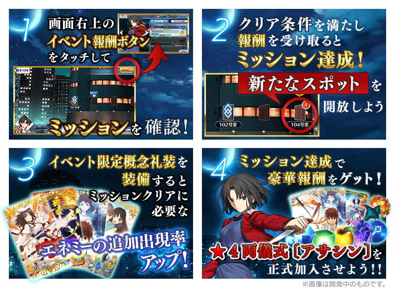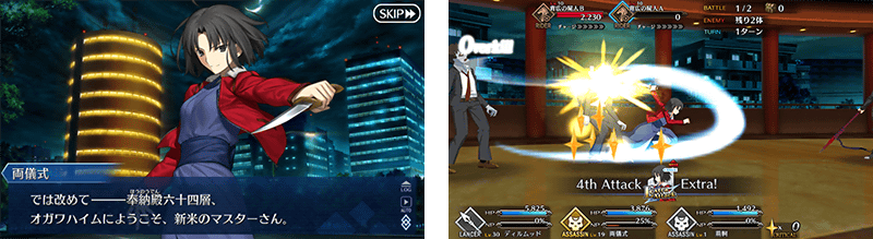 期間限定で加入する「★4(SR)両儀式〔アサシン〕」と協力し、特異点F付近に現れた揺らぎの謎を解明しましょう!