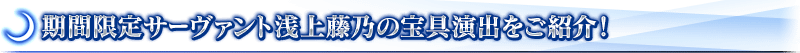 「Fate/Grand Order」公式サイト内のお知らせにて「★4(SR)浅上藤乃」の宝具演出を公開しております。あわせてご確認ください。