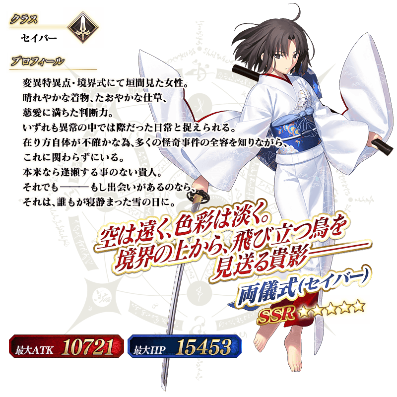 リニューアルされた両儀式(セイバー)の宝具演出を紹介いたします! 「Fate/Grand Order」公式サイト内のお知らせにて、「★5(SSR)両儀式(セイバー)」の宝具演出を公開しております。あわせてご確認ください。