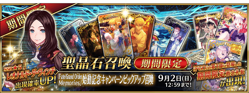 ◆「「Fate/Grand Order Memories」始動記念キャンペーンピックアップ召喚」期間◆