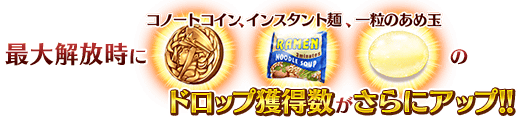 対象のサーヴァントは、期間限定イベント「復刻:デスジェイル・サマーエスケイプ ~罪と絶望のメイヴ大監獄2017~ ライト版」のイベントクエストにおけるイベント専用アイテム「コノートコイン」「インスタント麺」「一粒のあめ玉」のドロップ獲得数がアップします。