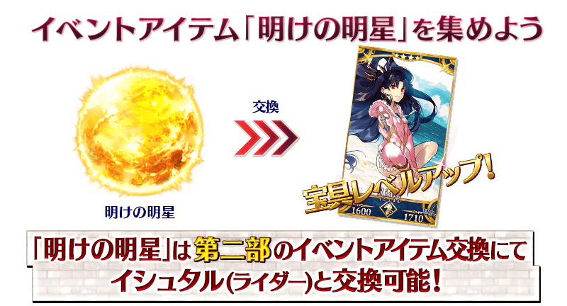 ※「明けの明星」とイシュタル(ライダー)の交換はイシュタル(ライダー)正式加入後に開放されます。