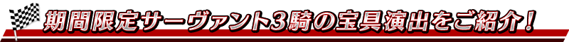 ※アルトリア・ペンドラゴン〔オルタ〕(ライダー)、エレナ・ブラヴァツキー(アーチャー)、源頼光(ランサー)はピックアップ期間終了後、ストーリー召喚には追加されません。