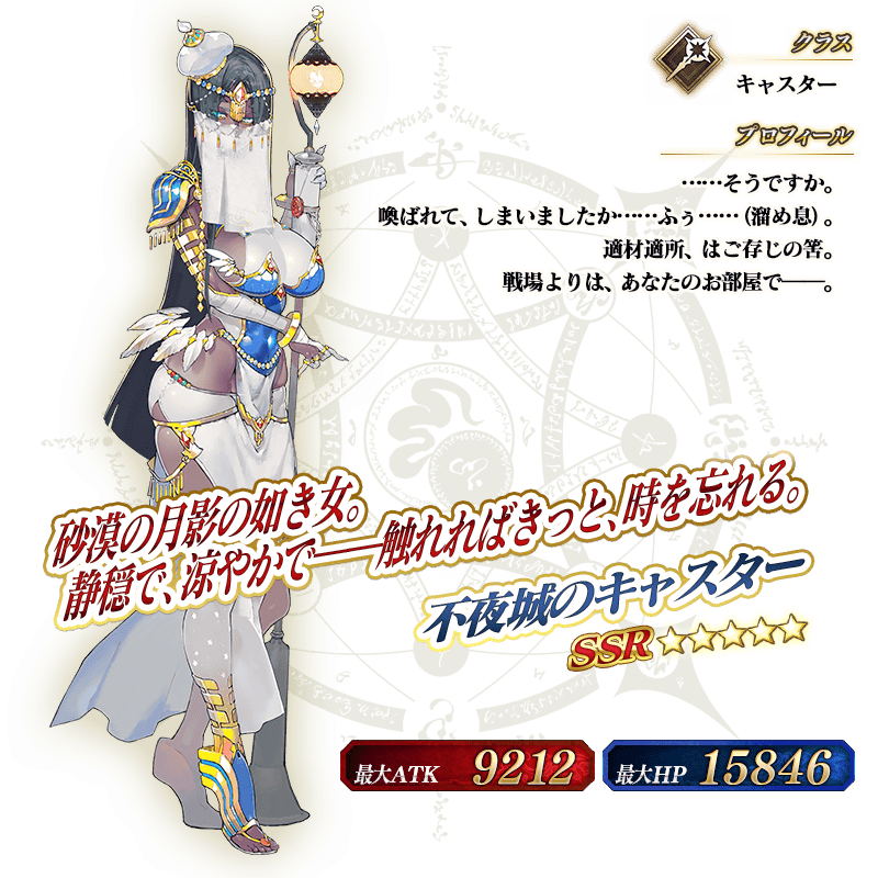 「★5(SSR)女王メイヴ」「★5(SSR)不夜城のキャスター」を日替りでピックアップ、「★3(R)チャールズ・バベッジ」を常時ピックアップいたします!