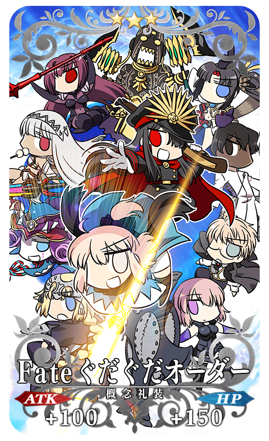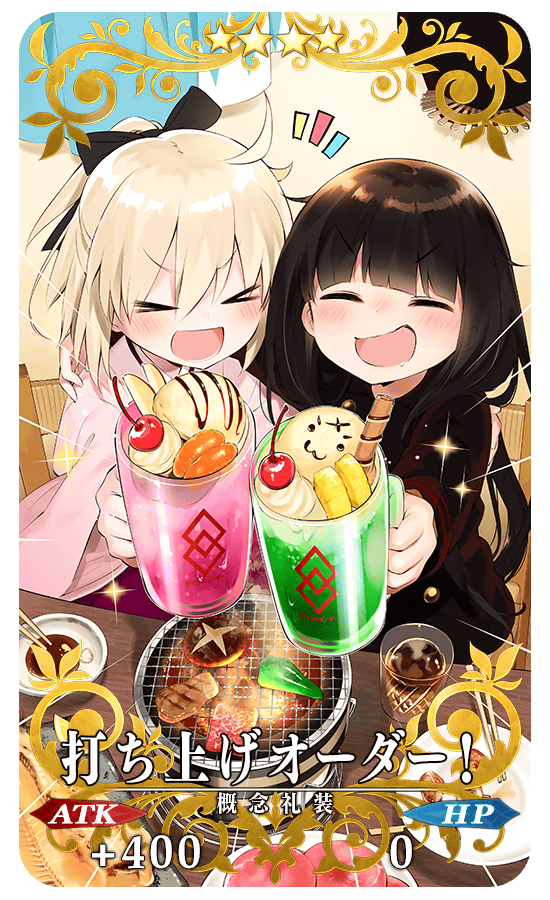 また、「ぐだぐだ本能寺ピックアップ召喚」限定概念礼装「★5(SSR)ぐだぐだ看板娘」「★4(SR)打ち上げオーダー!」「★3(R)Fateぐだぐだオーダー」も期間限定で登場!