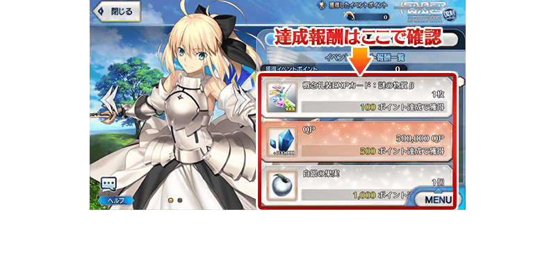 達成報酬は「イベントポイント報酬」で確認することができます。