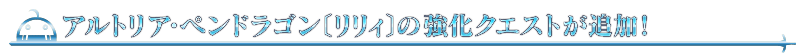 アルトリア・ペンドラゴン〔リリィ〕の能力が強化される特別なクエスト「サーヴァント強化クエスト」が新たに恒常として追加されます。