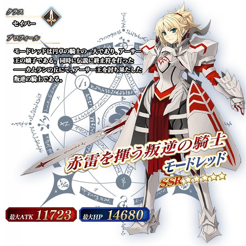 「★5(SSR)アルテラ(セイバー)」「★5(SSR)アルトリア・ペンドラゴン(セイバー)」「★5(SSR)モードレッド(セイバー)」を日替りでピックアップ、「★5(SSR)謎のヒロインX(アサシン)」を常時ピックアップいたします!