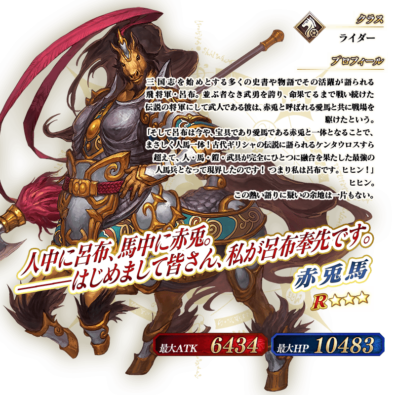 ※上記の「★3(R)赤兎馬」のイラストは霊基再臨第2段階のものです。