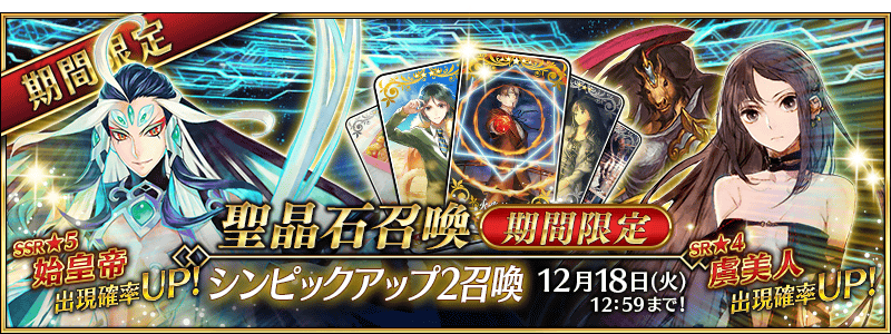 第2部 第3章「Lostbelt No.3 人智統合真国 シン 紅の月下美人」にて登場するサーヴァントより「★5(SSR)始皇帝」が期間限定で登場!