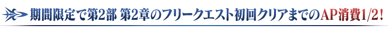 メインクエスト第2部(Lostbelt No.1からLostbelt No.2まで)のAP消費量が期間限定で1/2になります!