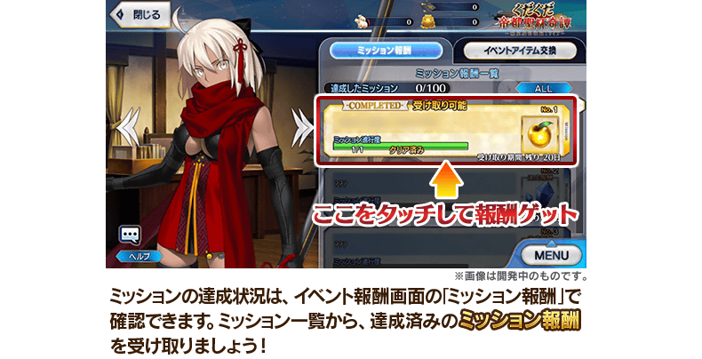 期間限定イベント「ぐだぐだ帝都聖杯奇譚」では、「特定のアイテムを一定数以上集める」「特定のエネミーを倒す」など、さまざまな条件を達成することで、豪華報酬を獲得できるミッションが発生します!