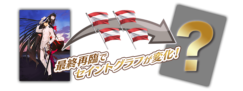 イベント期間中「ミッション報酬」でしか手に入らない「海援隊旗」を使って、霊基再臨を4回繰り返すと、セイントグラフに変化が!