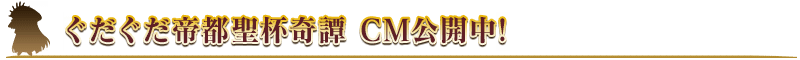 Fate/Grand Order公式サイト内トップページおよびギャラリーにて、期間限定イベント「ぐだぐだ帝都聖杯奇譚」のTVCMを公開しております。あわせてご確認ください。