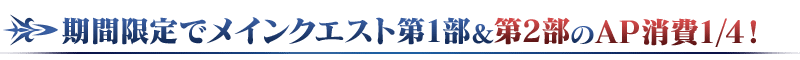 期間限定で、メインクエスト第1部&第2部のAP消費量が1/4になります!