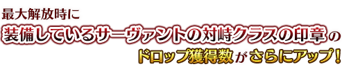 ※エクストラクラスのサーヴァントが装備した場合は、複数のクラスの印章のドロップ獲得数がアップします。ドロップ獲得数がアップする印章の種類は、クラスごとに異なります。
