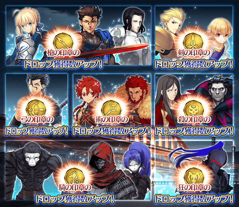 【イベント対象サーヴァントとドロップ獲得数がアップする印章の種類】