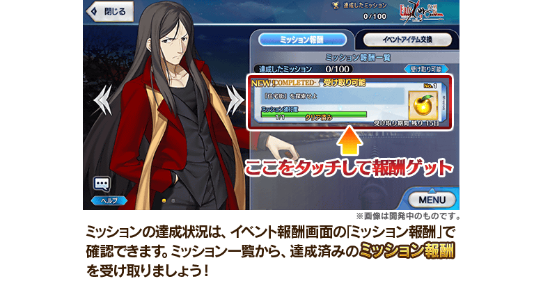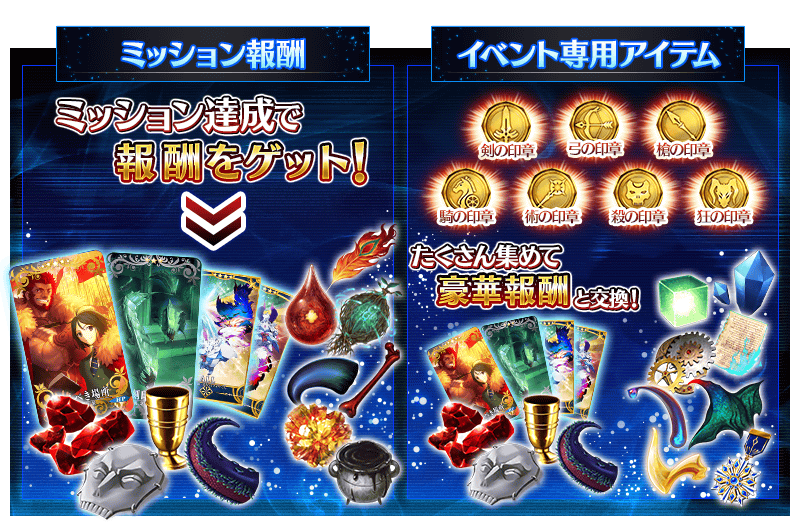 ※前回開催時に「聖杯」を獲得している場合、「復刻版イベント」では「聖杯」に代わり「伝承結晶」がミッション報酬となります。