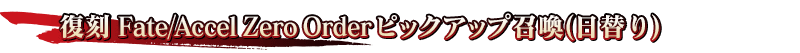 ◆「復刻 Fate/Accel Zero Orderピックアップ召喚(日替り)」期間◆