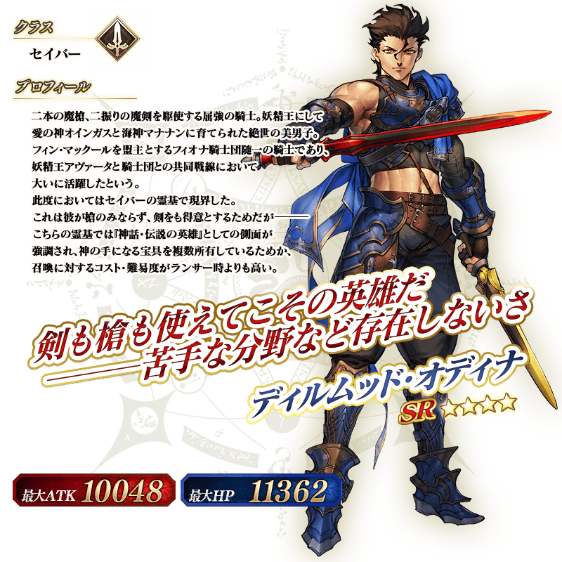 さらに、「★4(SR)ディルムッド・オディナ(セイバー)」が新登場いたします!