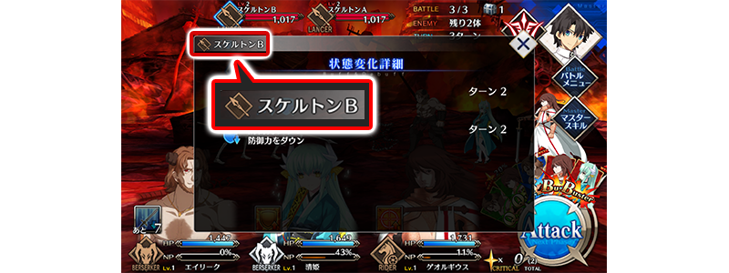 バトル画面にて、状態変化詳細を表示した際に、左上に対象のクラスおよびエネミー名が表示されるようになります。