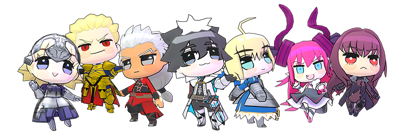 また、PlayStation®4/PlayStation®Vita/Nintendo Switch™の新規ダウンロードコンテンツとして、ジャンヌ・ダルク、ギルガメッシュ、無銘、シャルルマーニュ、アルトリア・ペンドラゴン、エリザベート=バートリー、スカサハの新規衣装「ふにふに」7種が追加となります。