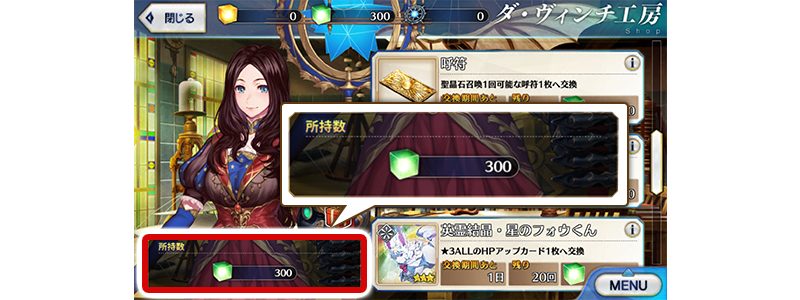 ダ・ヴィンチ工房の各種交換画面において、交換に必要なアイテムの所持数が常に画面左下に表示されるようになります。