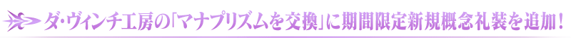 期間限定でダ・ヴィンチ工房の「マナプリズムを交換」に、下記の概念礼装を追加いたします。